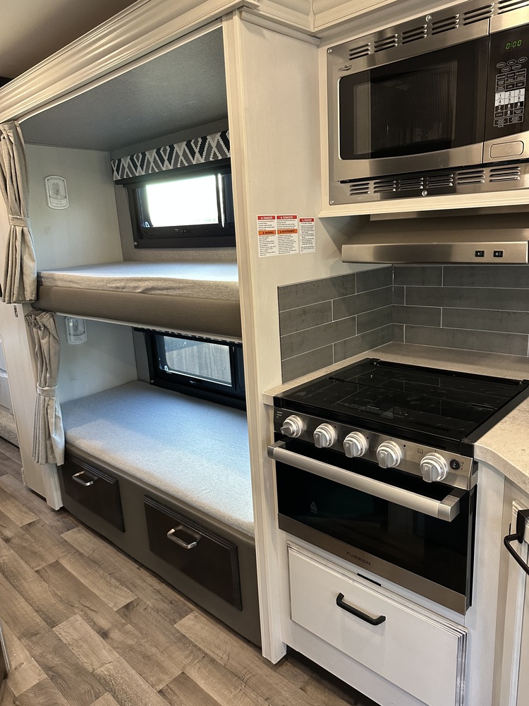 Bunk Beds: The 31F model includes bunk beds for extra sleeping space, ideal for families.