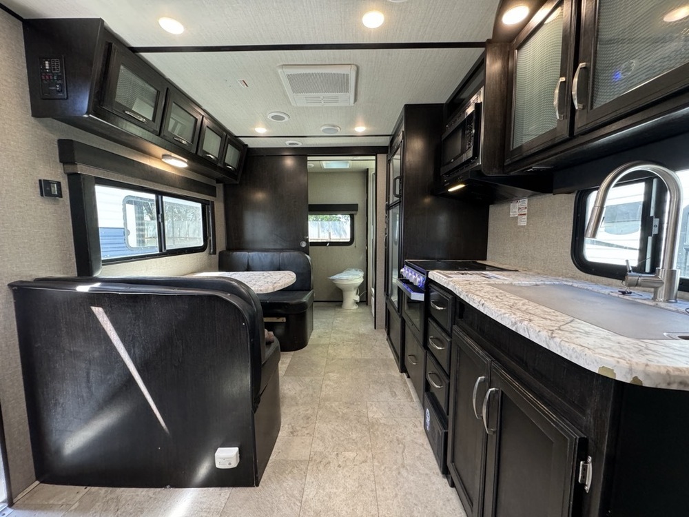 FREE SHIPPING & SETUP! 2019 GRAND DESIGN IMAGINE M-18RBE. Length 23FT long. Expresso Wood interior. CONVERTIBLE SOFA SLEEPER with MURPHY HIDE A BED. SUPER COMFORTABLE. PLENTY OF CABINETS FOR STORAGE. 3 BURNER STOVE TOP WITH LED LIGHTING. REFRIGERATOR AND FREEZER. FULL SOUND SYSTEM WITH BLUETOOTH CONNECTIONS. INTERIOR AND EXTERIOR SPEAKERS. FULL REAR BATHROOM with SKYLIGHT ABOVE SHOWER. LOTS OF ROOM TO WALK AROUND . SOLAR HOOK-UP. ALL-SEASON TRAILER WITH FIBERGLASS EXTERIOR. Dinette That Converts into sleeper. Lots Of Storage. Awning With LED Lighting. Sleeps 4, COLD A/C. Super Clean.. SUPER NICE TRAILER 4,097 UVW. CAN BE PULLED WITH A SMALL SUV. 30AMP POWER. OUR PRICE $13,995. SEVERAL SUPER NICE RVS TO CHOOSE FROM. We are located in KENNEDALE TX. We show Rv's 7 Days A WEEK BY APPOINTMENT. Call BRET 817*805*0067 or AMY 817*658*4633 FREE DELIVERY AVAILABLE TO ALL 48 STATES. WE INSPECT & GO THROUGH ALL TRAILERS TO ENSURE OUR CUSTOMERS ARE 100% SATISFIED.