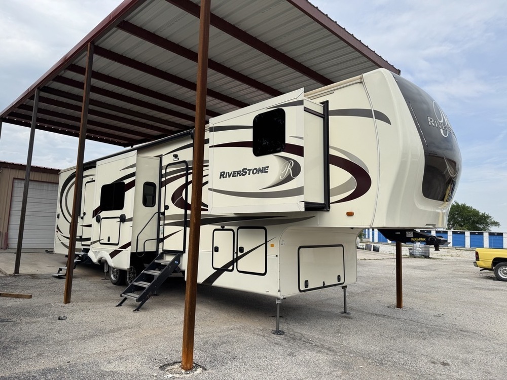 I have a super nice 2021 Riverstone 391FSK for sale. This is a high end 41ft luxury 5th wheel with 5 slide outs. This rig is fully equipped. It features 6 point auto leveling, a large electric patio awning, dual door entry, 17.5’aluminum wheels with H range tires, exterior entertainment system with speakers and LED TV, ladder, dedicated docking station, dual pane windows and much more. Inside the amenities continues. It features a gourmet kitchen up top with all residential appliances including a refrigerator, cooktop, oven , microwave and dishwasher with solid surface countertops, residential style vent a hood and solid wood cabinets. The living room features comfortable cloth seating , a desk, stereo, a huge fireplace and Samsung Lceiling fan,LED TV, this rig also features 3 rooftop A/C’s, a fully enclosed private bathroom with a huge shower with glass enclosure and fold down seat. The master suite features a king size bed lots of drawers, electric heater, ceiling fan, stackable washer/dryer, huge closet and much more. This rig has it all and is the fraction of the price of a new one. Tex Star RV 817-221-6161 817-219-4479