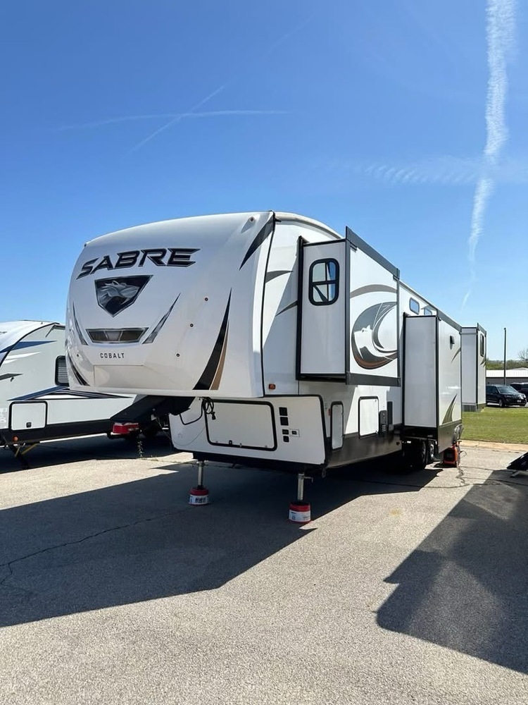 Specs for 2023 Forest River - Sabre. Floorplan: 350BH (Fifth Wheel). Dimensions-Length: 40.08 ft. (481 in.). Width: 8 ft. (96 in.). Height: 13.42 ft. (161 in.). Weight-Dry Weight: 11,853 lbs. Payload Capacity: 3,042 lbs. Hitch Weight: 2,575 lbs. Slideouts-Number of Slideouts: 4. Awning-Awning Length: 12 ft. (144 in.). Power Retractable Awning: Yes. $49,500. Come see it @RVYEAH! 2830 Nw 32nd Street Newcastle Oklahoma 73065. For more pictures, go to our Facebook page, @RVYEAH, or our website Rvyeah.com.