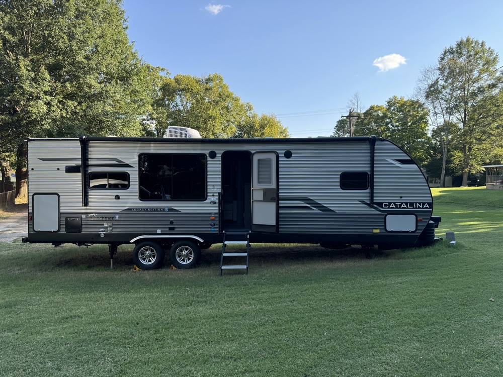 Outside, the Coachmen Catalina Legacy Edition 283RKS shines with its sleek exterior design, power awning, outdoor kitchen, and LED lighting. With zero miles on the odometer, this brand-new travel trailer is ready to hit the road and take you on your next adventure.