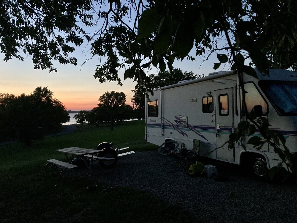 Desirable small “shorty” Motorhome. Fits in all camping spots. Georgie Boy has an excellent reputation and collectible with retro “Jazz” motif on exterior. Bathroom with shower and vanity with sink. Double kitchen sink. Ample storage on interior and locking basement storage on exterior. Large propane and water tanks. Reversible captain’s chairs. Twin bed and modified second bed area with desk in rear, sofa folds out. Option for table at sofa. Bought in Chicago and flew out to get it because it was a great deal. Paid $15,500 in 2021. Bought to customize, in progress. Professional installation of Renogy 400w solar system with app controls. Brand new Renogy inverter and electrical cord just needs easy install. Lots of extras to go with RV like radiator to save propane. New electric refrigerator to replace propane. Backup camera installed. Tire pressure monitoring system. Extend a stay propane adapter. Runs great!