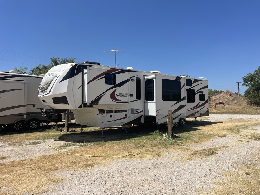 We are selling our 2012 Dutchmen Voltage RV. This thing has been a life saver for us but it is time to let it go. It is a 43' Toy Hauler edition. It can sleep 10 pretty easily and has 1.5 baths. I recently replaced the refrigerator cooling unit, the hot water heater, microwave and reclining couch. It has 3 slide outs and 3 awnings, 1 fresh water holding tank, 2 black water tanks and 1 grey water tank. The toy hauler garage is 12' deep and the ramp makes an outside porch with railing to keep kiddos or pets safe. You can also let the screen down to protect the RV from unwanted bugs while still allowing fresh air. Message me if you have questions or would like to come see it.