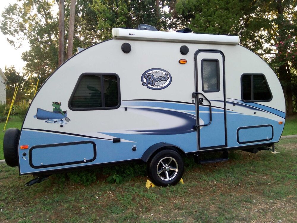 The RPod's aluminum frame construction protects your investment in terms of durability, longevity and will last you to rest of your life if you take care of it. The fiberglass exterior means easy maintenance. This RPod has a full-sized awning, so you have a place to set your chairs, table, etc. in case of rain or to create shade to escape the sun when hanging out.