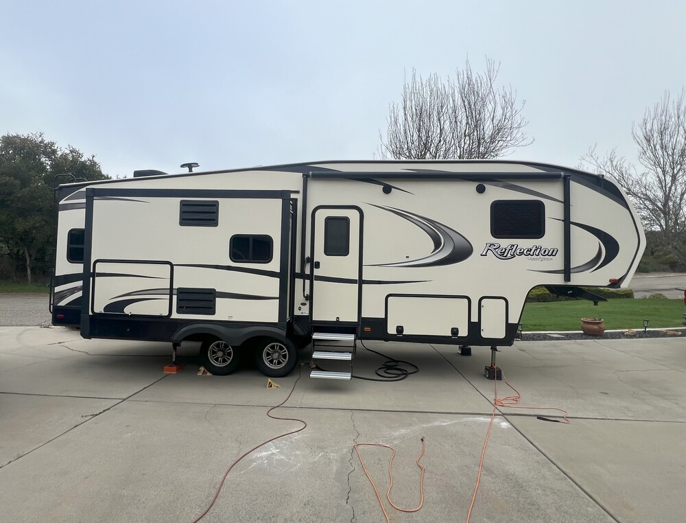 This Grand Design Reflection 29RS is a lightly used, highly sought-after fifth wheel trailer, known for its luxury features and its 3 slideouts made a spacious interior. The Reflection 29RS is equipped with top-of-the-line amenities, including a fully-equipped kitchen with central island, fireplace, large screen TV, cozy bedroom, and large bathroom facilities. It has a nice reflective exterior finish with a sturdy construction ensures durability and longevity. Lots of storage areas on the exterior, with a Lippert automatic self leveling jacks. This looks and feels like a new 5th wheel for less than half the price.