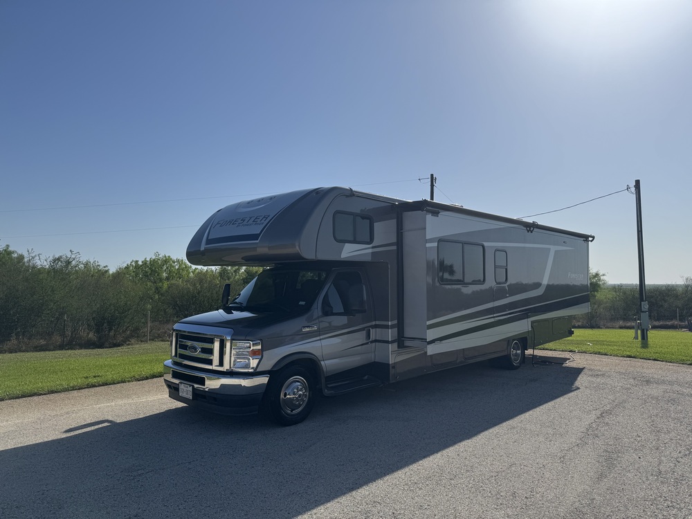 2021 Forester (by Forest River) 3271S; 32 Class C Motorhome on Ford E450 Chassis with 12,300 miles (Gas - 55-Gal Fuel Cap.); Onan QG 4000 Generator with 115 Hours; Optional Second Air Conditioner; Optional Roof Mounted Solar Panel with Controller; Optional Full Body Paint; Four Beds - Queen, (2) Bunks and Over the Cab Full Bed Layout