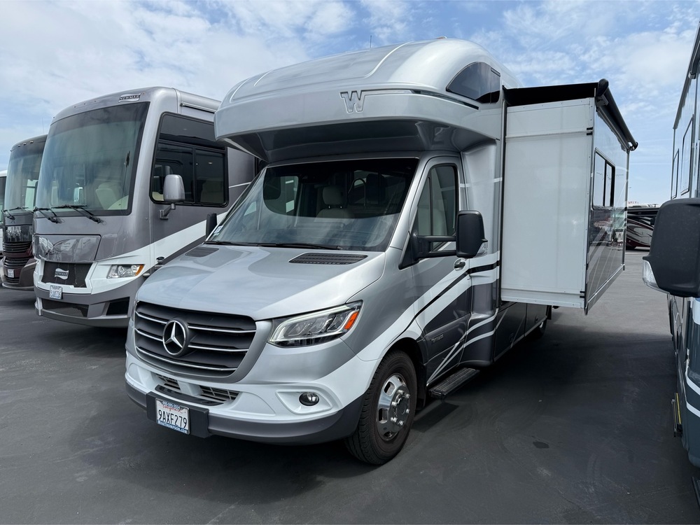 For quickest response call Kevin Fossum at Mike Thompson's RV 24/7 @ 714-660-7625 (NOT A TEXTABLE NUMBER)! LEVELING JACKS! The used 2022 Winnebago View 24D has a full wall slide slide out with a comfortable sofa that converts into a walk around queen bed. It sits next to a large U-shaped dinette. It has all of the options you would expect including; LCD TV, electric awning, convection microwave, solar package, plenty of storage and so much more.