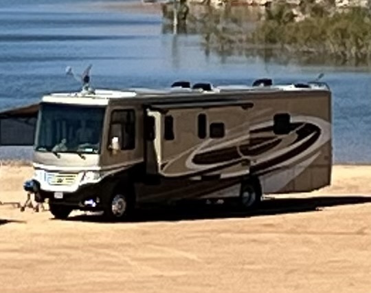 Save money with this rig! Thousand Trails Elite Lifetime Membership included plus its a Boondockers Dream, 50 Amp or Solar Powered (9 solar panels 1620 watts and nine Battle Born Batteries and two 3000 watt inverters), bath and a half with one being a composting toilet. Insta heat hot water. Large tanks able to boondock for two weeks at a time or more depends on how conservative you are. Two brand new AC units and New Furnace. One soft start not yet installed. Large bladder for extra water. Queen bed, large back bathroom. Replaced sleeper sofa with two recliners. Took out bench table to make more room. We use a folding table that seats more people. Also took out that huge microwave for more cabinet space and redid pantry added sliding drawers. Added best Wyneguard Satellite System and Cell booster. Three tvs cd player and Dish Box. Added flap in back to keep rocks off of toad. Also has Blue Ox towing system to flat tow. Has small ding by door and ladder has a ding. A few rock chips other than that outside is great. Normal wear and tear on inside. We have been fulltime for five years. Love her, Millie, but for health reasons we must quit and sit still. She has many more Beautiful miles to go! Mileage 30362 Gas Ford V10.
