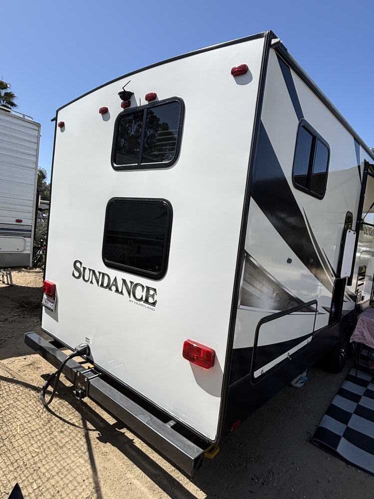 Very clean interior exterior, to AC units, stainless steel appliances, two bunks in the back one full bed upfront two bathrooms, new tires, very clean, must see. It is wired for solar panels and has two mobile solar panels.