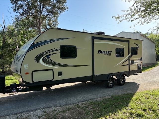 The 2018 Keystone Bullet Ultra Lite 248RKS is a stylish and spacious travel trailer perfect for your next adventure. With a sleek design and modern amenities, this trailer offers comfort and convenience on the road. The exterior features a durable build with a smooth finish and aerodynamic shape for improved fuel efficiency. The spacious interior includes a cozy living area with comfortable seating and a large kitchen equipped with all the essentials for cooking delicious meals on the go. The bedroom provides a relaxing retreat with a luxurious queen-sized bed and ample storage space for all your belongings. The bathroom offers a full-size shower, sink, and toilet, ensuring you have everything you need for a comfortable stay. With only 4900 miles on the odometer, this trailer is in excellent condition and ready for your next journey. Whether you're exploring the great outdoors or embarking on a cross-country road trip, the Keystone Bullet Ultra Lite 248RKS is the perfect companion for all your travel needs. Experience the freedom and flexibility of life on the road with this top-of-the-line travel trailer. Don't miss out on this opportunity to own a reliable and stylish RV that will take your adventures to the next level. Get behind the wheel of the Keystone Bullet Ultra Lite 248RKS and start making memories that will last a lifetime.