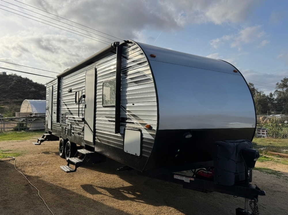 Original owner, 2021 Forest River Evo T2850 bunkhouse slide out trailer. 32' total length, 6,900lbs unloaded empty weight, sleeps up to 9, current registration, title in hand, everything works, ready to go camping!