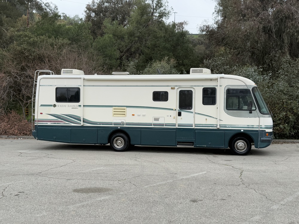 Only 32 Feet Long, 1996 Holiday Rambler Endeavor Limited Edition 32CB Class A with only 24,000 original miles. NEW TIRES, ROOF JUST RESEALED, ONAN Cummins 7000 GENERATOR WITH ONLY 163 HOURS (JUST SERVICED), just passed smog check. This motorhome has the optional second A/C unit on the roof. 4 Point Leveling System. Backup Camera. Four 6v Batteries to power the house. The awning has a metal wrap to protect it from the sun and rain when not in use; awning fabric in good condition. Interior in good condition. Has not been lived in and has not been a rental, smells clean and fresh. TWO OWNER MOTORHOME!!! First owner had it from 1996-1999. Second owner 1999 to 2025. Interior pictures coming Tuesday March 4th after it gets detailed and carpet cleaned.