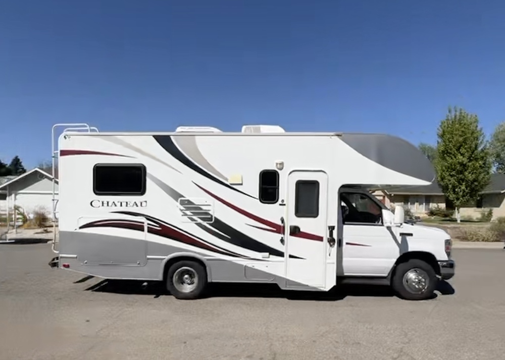 This Class C RV has a Ford E-350 chassis with a Triton V-10 engine. Regular unleaded gas. The total length is 24 feet. It is very easy to drive. Only 27,100 miles.