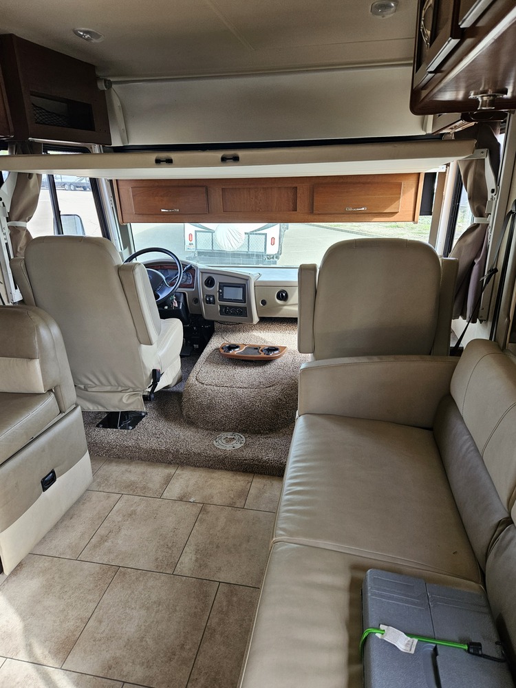 The bedroom in the Fleetwood Flair 30U is a peaceful retreat, with a comfortable mattress and plenty of storage space for all your belongings. The bathroom features a shower, toilet, and sink, providing all the comforts of home on the road. With its spacious layout and thoughtful design, this motorhome is the perfect choice for families, couples, or solo travelers looking to explore the open road in style.