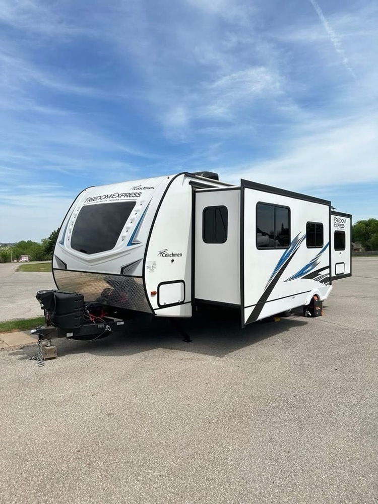 Specs for 2021 Coachmen - Freedom Express Ultra Lite. Floorplan: 259FKDS (Travel Trailer). Air Conditioning: 2 Units. Dimensions-Length: 29.92 ft. (359 in.). Width: 8 ft. (96 in.). Height: 11.25 ft. (135 in.). Interior Height: 6.75 ft. (81 in.). Weight-Dry Weight: 6,494 lbs. Payload Capacity: 2,506 lbs. GVWR: 9,000 lbs. Hitch Weight: 752 lbs. Slideouts: 2. Awning-Awning Length: 18 ft. (216 in.). Power Retractable Awning: Yes. $22,900. Come see it @RVYEAH! 2830 Nw 32nd Street Newcastle Oklahoma 73065. For more pictures, go to our Facebook page, @RVYEAH, or our website Rvyeah.com.
