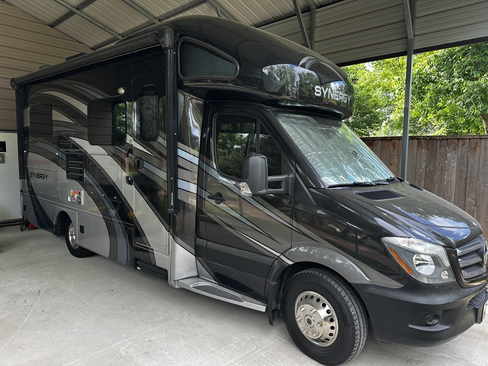 I thought the soft floor was due to a leak, so I paid $450 for a pressurized leak test which resulted in NO leaks. At that point I pulled up the linoleum to discover the sandwiched styrofoam (Thor does this to save weight) subfloor had delaminated, so it was replaced with 3/4" plywood and new laminate flooring installed throughout, new smoke detector in 2024, 1100W inverter in cabinet under sink, brand new RV Lock keyless / remote controlled door lock in 2024, pop-up counter top extension, propane extension kit enables you to operate your grill from the onboard 20 gallon tank, custom cut reflective insulators for all windows, black and grey tank valves replaced in 2021, voltage regulator on diesel generator (219 hours) replaced in 2022, always serviced at MB recommended intervals with genuine Mercedes parts, air horn, wall-mounted drink, phone and remote control holders throughout, surge protector, upgraded shower head, new all-metal window cranks, flagpole and mount, onboard battery tender, two extra brand new front hubcaps, exhaust extension for generator for safe and legal boondocking at a tailgaiting site, 3 extra water filters, and many other extras that you just have to see to appreciate.