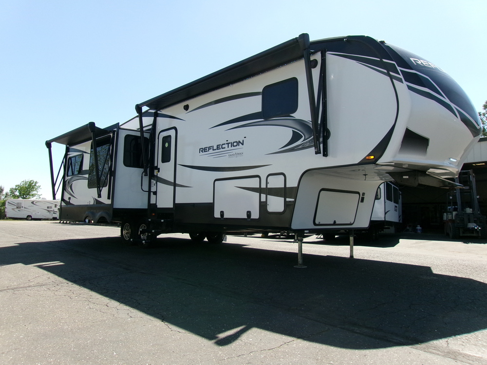 THIS 2020 GRAND DESIGN REFLECTION 337RLS 3 SLIDE 5TH WHEEL IS IN LIKE NEW CONDITION WITH ALL THE LUXURY UPGRADES!! THE RELECTION IS EQUIPPED WITH THE KITCHEN ISLAND, WASHER/DRYER HOOKUPS, WALK AROUND QUEEN BED, LEATHER RECLINERS, LEATHER SOFA BED, DOUBLE REFRIGERATOR, PANTRY, HUGE SHOWER, DUAL AC, 2 ELECTRIC AWNINGS, AUTO LEVELING, OUTDOOR SPEAKERS, TOW HITCH, BACK UP CAMERA READY, AND MUCH MORE!!