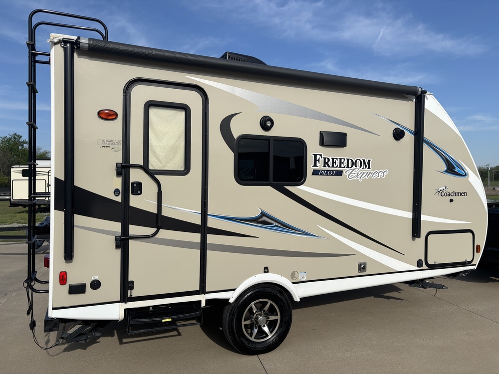 2018 Coachmen Freedom Express Pilot 19FBS, 2018 Coachmen Freedom Express Pilot 19FBS 17' Travel Trailer. Slide Out, Awning, Sleeps 4, A/C Unit, Leveling Jacks. Comes with hitch, load levelers, and anti sway bar. Receiver hitch on bumper for a bike rack.