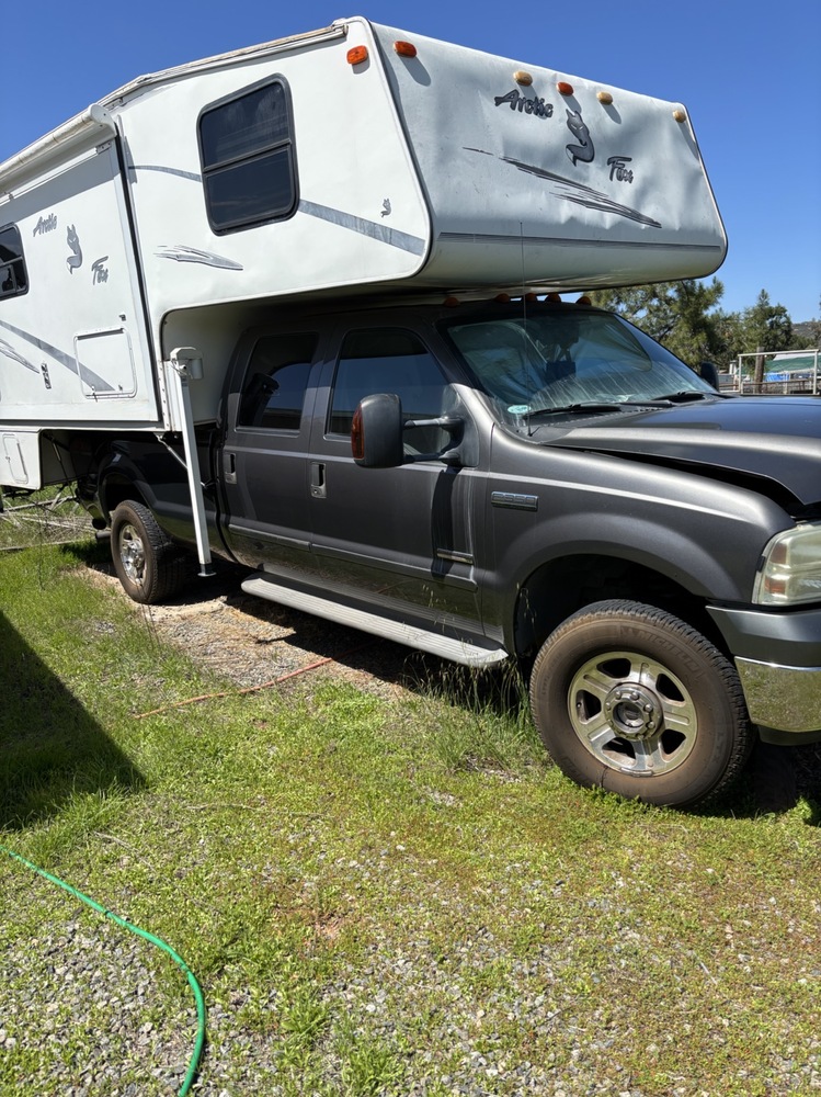 Used 2005 NORTHWOOD MFG ARCTIC FOX 1140 and 2005 Ford F-350 Lariat 4x4. Spacious Arctic Fox 1140. truck camper with pop out dinette, sleeps four easily. Comes with a 2500 watt generator with only 65 hours. The dry shower is separate from the bathroom and is very large. Four burner stove, a pull out storage cabinet for spices and cans is very handy. Large refrigerator with separate freezer. It has two propane tanks and two interstate batteries. It is wired for solar, but the panel will need to be replaced. Senior non smokers owned. The truck is a 2005 F350 Lariat with only 120,000 easy miles. It has all the bells and whistles. New Michelin LTX AT2 with 10,000 miles period. Owner had dealer install eXtra leaf springs and new Bilstein shocks. For safety a new back view camera and for the engine a Scan Gauge 2 monitor for the vitals. A new alternator, and degas bottle and coolant filter was installed. This rig was owned by very particular senior couple. Never abused! The truck looks new with leather interior. Only blemish is some clear coat on hood. The camper has zero leaks!,!! Only a small cosmetic fix of bottom corner of camper, otherwise perfect. The Arctic Fox 1140 camper goes for $10,00-&15,00 and the truck $13,000-$16,000 in this condition. A untimely death forces this sale. Check it out at $19,499. Thank you