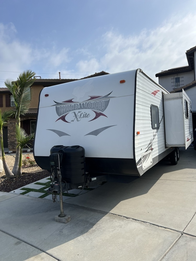Outdoor kitchen with sink, fridge, grill with propane line, & storage. 3 bunk beds in the rear & queen in the front. 5,895 lbs dry & 6,311 lbs filled with water. Hand-held remote control for the main slide, awning, porch light, & leveling jacks. Original owner.