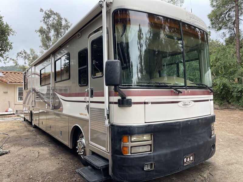 PLZ WATCH THE VIDEO: Extremely low-mileage diesel pusher RV with only 60,000 original miles over 25 years. clean calif title, Over $7,500 in service was completed, including all new batteries, 6 NEW TIRES 1 NEW ENGINE AC 1 NEW ROOF AC 4 NEW AIRBAG SUSPENSION, new alternator, new roof sealant with polyurethane coating. full engine and filter service, and air brakes repaired. Paint is good no rust….