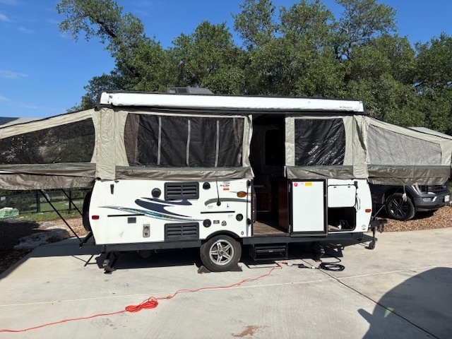 Flagstaff High Wall series pop-up Camper. Used about 12 times since new (one owner). Sleeps 6, dual power fridge, 3 burner stove, microwave, AC and heater. and toilet. Selling well below value due to the fact it hasn't been used in 4 years. Located in San Antonio. $2,495 OBO.
