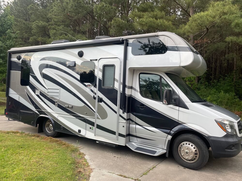 This RV is in excellent condition- has been well-maintained. Powered by highly sought-after Mercedes Diesel engine- extremely fuel-friendly. Features double slide outs with rear bedroom w/queen memory foam mattress, cedar-lined closet, bathroom with shower. Kitchen features 3 burner recessed gas range with glass cover, microwave, 6 cu foot refrigerator and flip-up counter extension. Living area features dinette, pull-out sofa, 32" flat panel tv, black-out roller shades. In the cab area sirius tuner/antenna, 7" touch-screen radio, leather driver & passenger seats, swivel driver/passenger seats with extra cafe table.