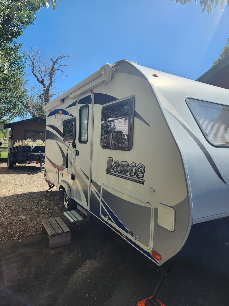 Great trailer, everything works. Ready for your next camping adventure. Some nice features of this model are the dry bath, and it sleeps 4 comfortably. Spacious for a 159 floor length trailer. Easy to tow and set up with a Gross Dry Weight 3270 Lbs., and electric tongue jack. Tanks: fresh, grey and black, all 26 gallons each. Comes with 2 spare tires, leveling blocks, and a power cord. See Lance website for full specs for this model. Did sustain water damage from skylight, but skylight was replaced last year and no leaks.