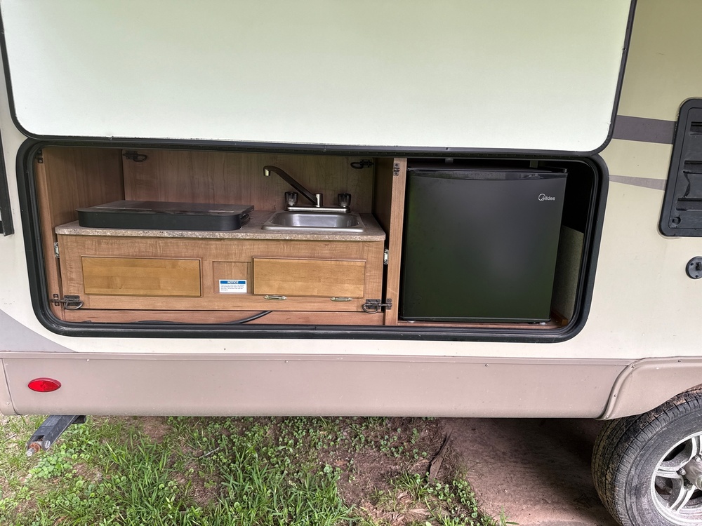 The exterior of the Rockwood Mini Lite 2509S is just as impressive as the interior. The sleek fiberglass exterior is durable and easy to maintain, while the power awning provides shade and protection from the elements. The trailer also features outdoor speakers, perfect for enjoying your favorite music while relaxing outside. With its stylish design, modern amenities, and convenient features, the Forest River Rockwood Mini Lite 2509S is sure to elevate your next road trip experience.