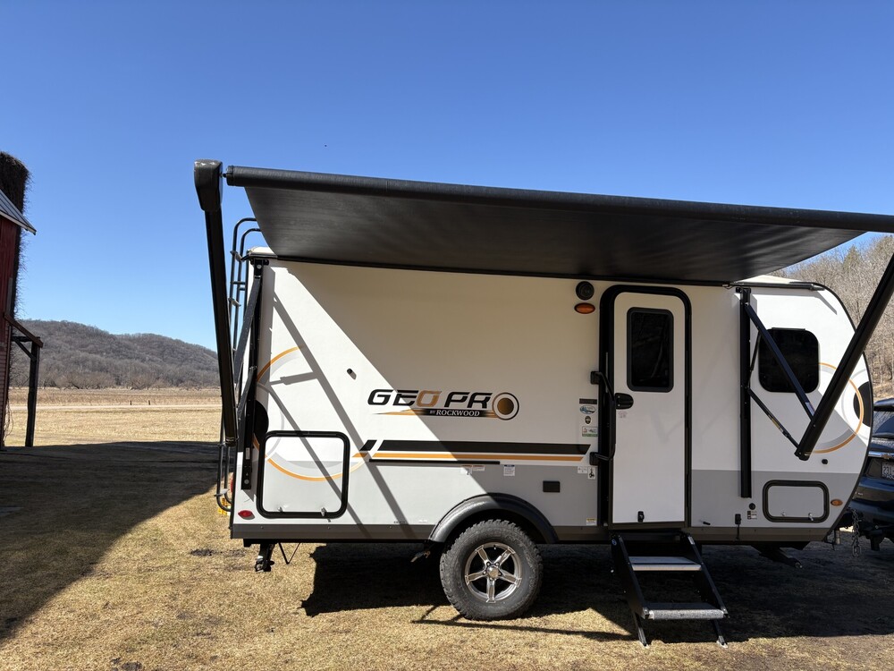 Outback pkg can operate 3 days on battery and additional with solar power, push out kitchen and outdoor kitchen. Front double bed, back bunks. Solar/battery/propane. Full bathroom plus outdoor shower. 31 gal fresh water, 30 grey, 30 black. TV equipped, Wi Fi ready. Heavy hitch, stabilizer bars and all accessories included - see picture with accessory list. Pristine condition Only used 6 times. Air conditioning and heat. Stored inside for winters, Authorized dealer winterized and dewinterized, used authorized dealer maintenance agreement keeping all seals, etc in good order annually.