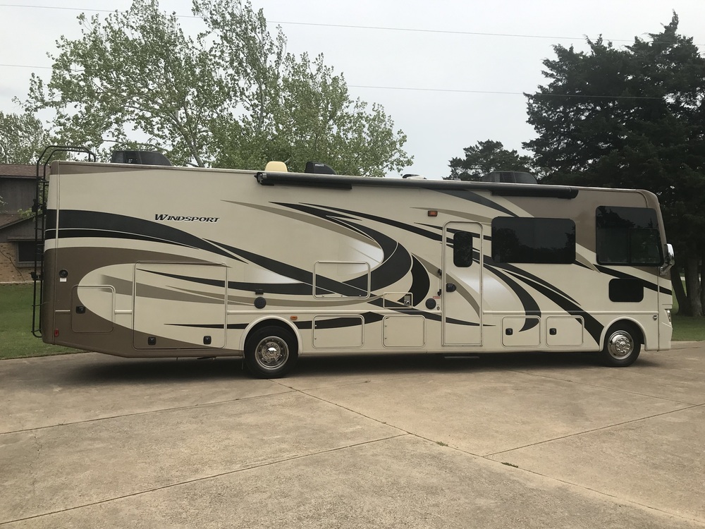 We have owned this motorhome for 5 years. When we purchased the motorhome it had 2400 miles. It now has 10,600 miles. It has been used only for traveling. The motorhome comes with an extended warranty good until March 2026. We had the interior reupholstered about three years ago. The motorhome sleeps 8 people. It has an Onan 5500 generator with 204 hours. We are empty nesters, so the motorhome has been a non-smoking couples coach with no pets and kept in an rv shelter. Since we are empty nesters, we used the bunk area for extra storage. There is an outside 32 inch flat screen tv and two 26 inch flat screen tvs in the bunk area along with the 43 inch flat screen in the living area. The motor home has a remote control that operates several functions of the coach. When purchased, the motorhome will be completely equipped to immediately go camping. We have a clean Texas title and are available for any questions and additional pictures.
