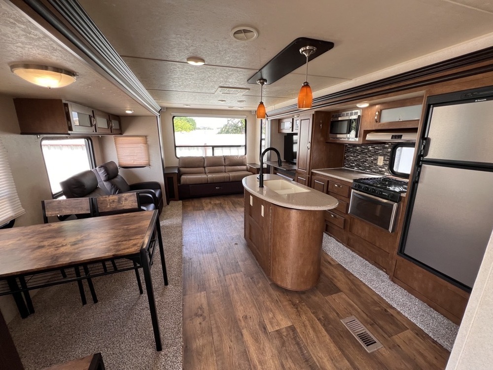 2017 FOREST RIVER SALEM 27REI Length: 33FT. 2 APPOSING SLIDE TO MAKE 1 LARGE LIVING ROOM, . SUPER NICE FLOOR PLAN!! PRIVATE BEDROOM with DOUBLE-SIDED BATHROOM. QUEEN SIZE MATTRESS. SKYLIGHT ABOVE SHOWER. PLENTY OF SPACE TO MOVE AROUND. PANTRY AREA. LOTS OF STORAGE THROUGHOUT THIS RV. FIREPLACE. FULL-SIZE REFRIGERATOR. STAINLESS STEEL KITCHEN SINK. NICE COUNTERTOPS. MULTIPLE KITCHEN DRAWERS. DINETTE TABLE & REAR SOFA CONVERTS INTO A SLEEPER FOR EXTRA GUESTS. NICE SOFA SLEEPER. 2 REAR RECLINERS FOR YALL TO KICK BACK AND RELAX.. VERY COMFORTABLE TRAILER! 2 DOOR. AWNING. INDOOR AND OUTDOOR SPEAKERS. SOLAR CONNECTIONS. OUTDOOR SHOWER. PLENTY OF STORAGE. GREAT LAYOUT. Sleeps 6, 2 COLD A/C. Super Clean.. SUPER NICE TRAILER ONLY 7558 lbs UVW. 50AMP POWER. OUR PRICE $19,995. SEVERAL SUPER NICE RVS TO CHOOSE FROM. We are located in KENNEDALE TX. We show RV's 7 Days A WEEK BY APPOINTMENT. Call BRET 817*805*0067 or AMY 817*658*4633 FREE DELIVERY AVAILABLE TO ALL 48 STATES. WE INSPECT & GO THROUGH ALL TRAILERS TO ENSURE OUR CUSTOMERS ARE 100% SATISFIED.