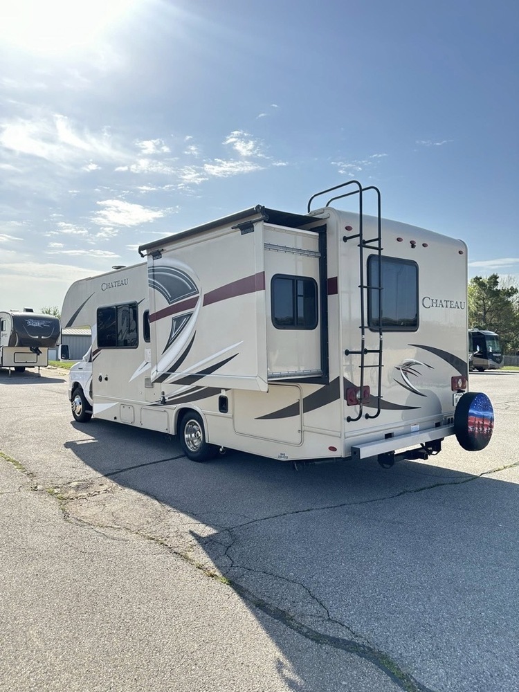 Specs for 2018 Thor Motor Coach - Chateau. Floorplan: 26B (Class C). Engine-Engine: Triton / V10. Miles: 16K. Chassis Brand: Ford. Chassis Model: E350. Cylinders: 10. Dimensions-Length: 27.5 ft. (330 in.). Width: 8.25 ft. (99 in.). Height: 10.83 ft. (130 in.). Interior Height: 7 ft. (84 in.). Wheelbase: 15.25 ft. (183 in.). Weight-Towing Capacity: 8,000 lbs. GVWR: 12,500 lbs. Slideouts-Number of Slideouts: 1. Awning-Awning Length: 18 ft. (216 in.). Power Retractable Awning: Yes. $48,000. Come see it @RVYEAH! 2830 Nw 32nd Street Newcastle Oklahoma 73065. For more pictures, go to our Facebook page, @RVYEAH, or our website Rvyeah.com.