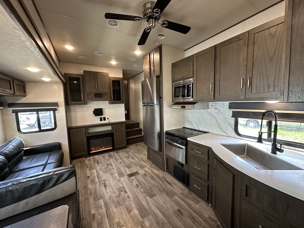 No... Camper... Left... Behind... Bring the whole gang with you in the 356QB. The biggest bunkhouse in the Heritage Glen lineup, this floorplan sports 2 FULL BATHROOMS! Guests can use your 2nd bathroom through the rear entrance. A well-appointed outside kitchen rounds out this unbelievable floorplan.