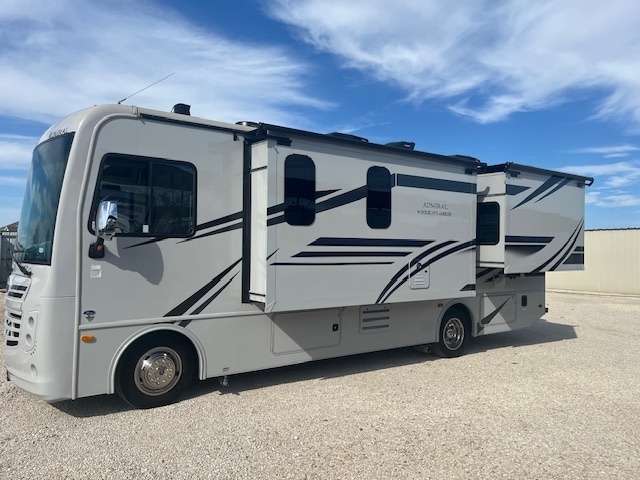 The Admiral model has a spacious interior and high-end features. Inside, you'll find all the amenities you need for a home away from home, including a fully equipped kitchen, a cozy living area, and a comfortable bedroom. The layout is designed for maximum convenience and is perfect for long trips or full-time living. The high-quality materials and finishes used throughout the RV give it a modern and upscale feel. The Admiral is also known for its reliable performance on the road. Its sleek and modern exterior design is sure to turn heads wherever you go.