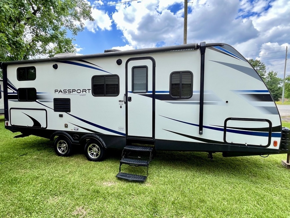 2020 KEYSTONE PASSPORT TRAVEL TRAILER 27ft TOTAL.ALL FIBERGLASS AND ALUMINUM FRAME CONSTRUCTION.With SLIDE AND 2 BEDS WITH OUTSIDE KITCHEN.27ft overall length. half ton or SUV towable Only 4900LBS. Front Queen walk around bed. Center kitchen with Sofa in slide and rear full size bed . full bath with shower / tub Electric awning. central ac /heat .large fridge works on electric and gas has a 6,5 gas/elc water heater with DSI . 30 amp service . everything works Will demonstrate actual photos. clean title. Call (832)253-3336