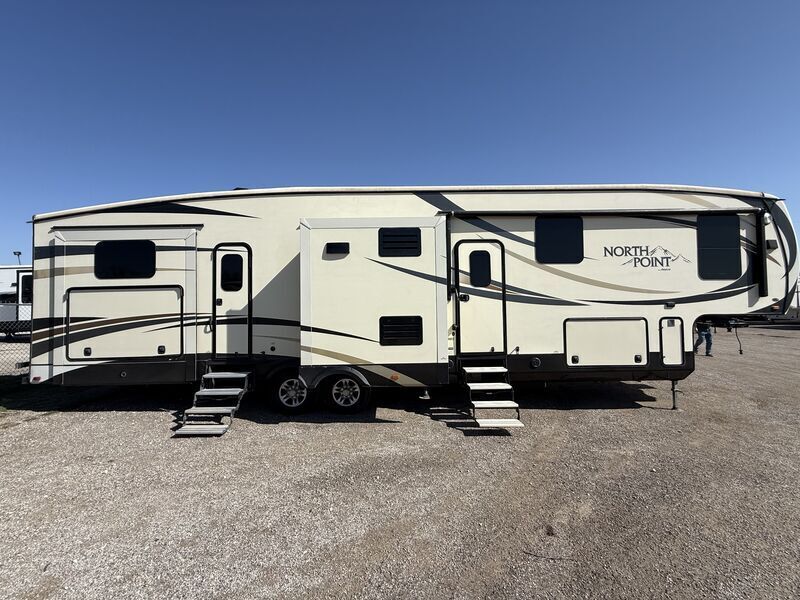 Call or Text Waylon8_1_7_9_4_1_0_3_2_6Financing is available!Bunk house bath and half with outside kitchenKey Specifications:Dimensions & Weight:Length: 42 5 Dry Weight: 13,560 lbsGVWR: 16,500 lbsHitch Weight: 2,395 lbsFresh Water Capacity: 75 gallonsGray Water Capacity: 87 gallonsBlack Water Capacity: 50 gallonsSleeping Capacity:Sleeps 10 comfortablyExterior Features:Double entry doors (main and rear)Power awning with LED lightingOutdoor kitchen with sink, refrigerator, and stovetopTwo large slide-outs (Living Room & Master Bedroom)Electric stabilizing jacksFour-season insulation for year-round useExterior speakers for entertainmentInterior Features:Spacious living area with opposing slides for extra roomResidential-style sofa and theater seating50 flat-screen TV with entertainment systemElectric fireplace for cozy nights inKitchen with large island, solid-surface countertops, and pantryFull-size refrigerator (electric and propane)Microwave and oven comboDouble sink with high-rise faucetCentral vacuum systemBedroom:King-sized bedPlenty of wardrobe and drawer spaceTV hookupSeparate entry to the bathroom for added convenience