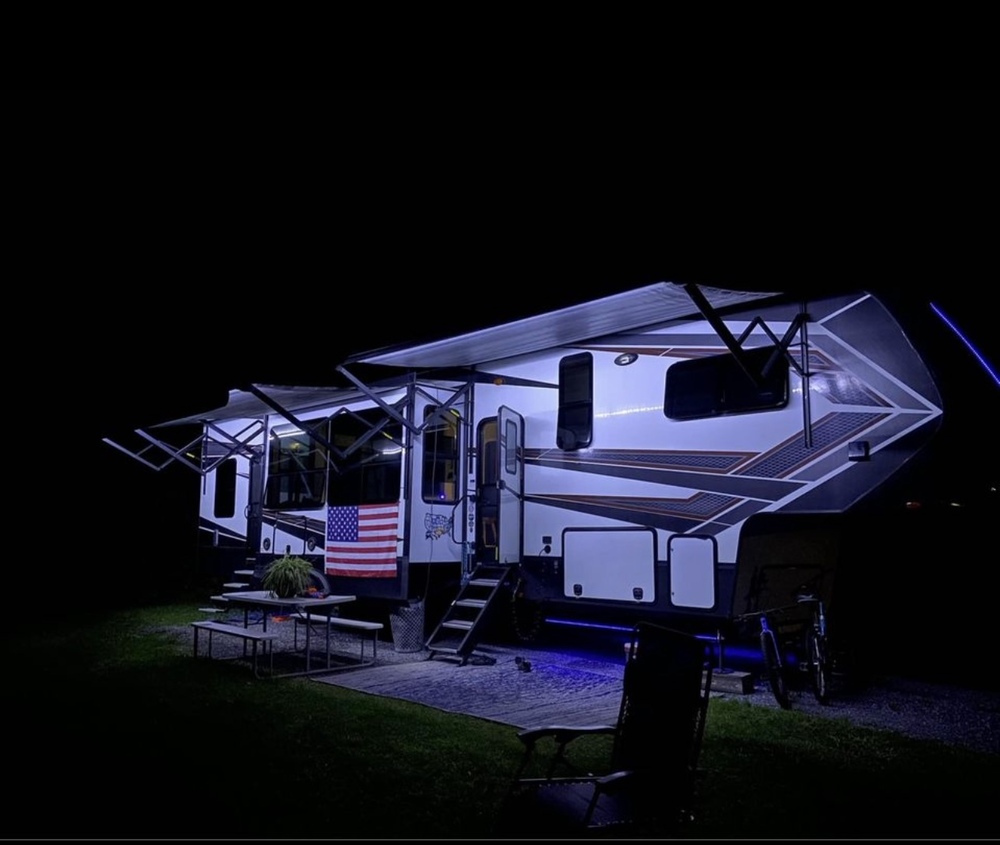 With three A/C units, you can enjoy the perfect indoor climate no matter the weather outside. We have also had below freezing temps and it comes equipped with tank heaters which work amazing! No frozen pipes here! Four patio awnings offer absolute comfort outside, providing shade and protection from the sun.
