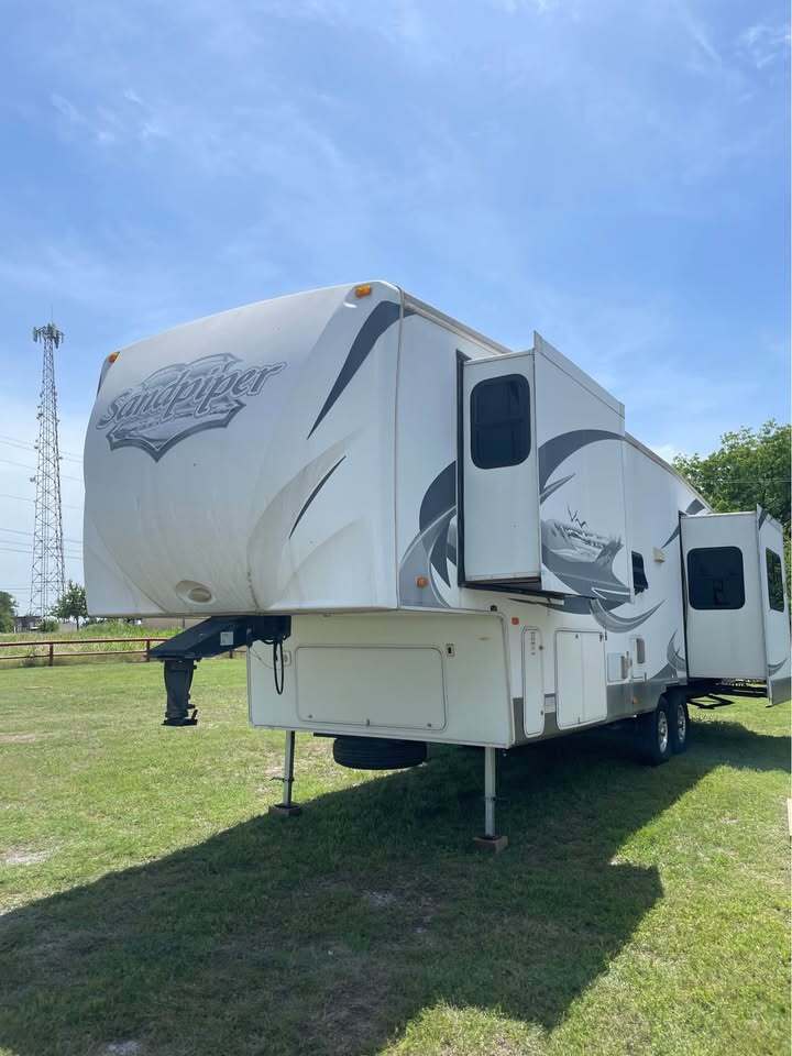 This 2010 Forest River Sandpiper Fifth Wheel is in great condition with everything working . Three Slide outs , Two A/Cs King size bed with deep closet . Large bath area . Tons of Storage . Opposing slide outs in the main living area . For more information call me at 817-504-1325.
