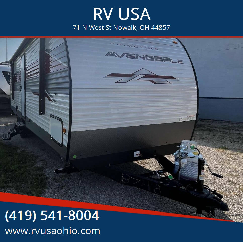 Experience luxury and comfort in the Prime Time Avenger LE travel trailer 24RLSLE. Step into the spacious rear living area, featuring a U-shaped dinette slide and a cozy sofa, creating the perfect space for relaxation. The well-equipped kitchen boasts ample counter space, a stainless steel deep sink, and full amenities, making meal preparation a breeze. With a convenient full bathroom and a private front bedroom with a queen bed and three wardrobes, this trailer offers the ultimate in convenience and luxury for your travel adventures.