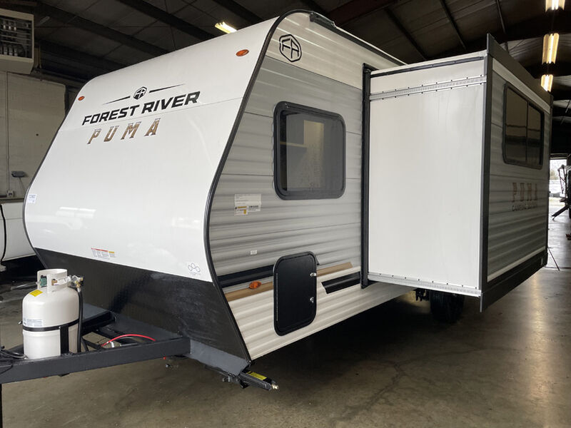 OWN THIS UNIT FOR ONLY $205.70 per month w/ approved credit! This Trailer features Bunkbeds, a Dinette Slide-Out, and a Front Bed, Sleeps 6-8 and only weighs 4,188lbs! This Trailer is equipped with Aluminum Siding, 13,500BTU A/C, Power Awning, LED Lighting throughout, Microwave, AM/FM/Bluetooth Stereo w/ Exterior Speakers, 4.3 Cubic Foot 12 Volt Refrigerator, 6 Gallon Gas/Electric Water Heater w/ DSI, 2 Burner Cooktop, Furnace, Night Shades, Rockguard, 30lb# LP Tank, Solar Panel Hook Up, Prewired for a back up camera, Battery Disconnect, Stabilizer Jacks. Mini Outside Kitchen w/ Gas Griddle, Sink, and 110 Refrigerator!