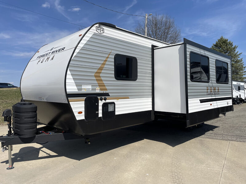 OWN THIS UNIT FOR ONLY $271.46 per month w/ approved credit! This Trailer features four bunkbeds in the rear bunk area, a couch/dinette slide-out, and only weighs 6,426lbs! This Trailer is equipped Aluminum Siding, ducted 13,500BTU A/C, Power Awning, LED Lighting throughout, Microwave, TV Antenna, AM/FM/Bluetooth Stereo w/ Exterior Speakers, 10 Cubic Foot 12 Volt Refrigerator, 6 Gallon Gas/Electric Water Heater w/ DSI, 3 Burner Cooktop, Furnace, Night Shades, Exterior Grab Handle, Outside Black Tank Flush, Aluminum Solid Triple Step, Rockguard, 20lb# LP Tanks, Solar Panel Hook Up, Prewired for a back up camera, Battery Disconnect, Power Tongue Jack, Stabilizer Jacks, and Spare Tire. Small Outside Kitchen w/ 110 Refrigerator, Gas Griddle, and Sink