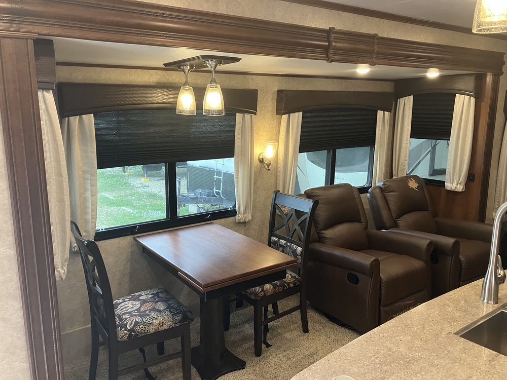 At 33 feet in length, this travel trailer offers plenty of room for the whole family. The interior is thoughtfully designed with modern amenities such as a fully-equipped kitchen, spacious living area, and comfortable sleeping quarters. The layout includes a master bedroom with a king-sized bed, a cozy living room with a fireplace, and a full bathroom with a shower. The RV has two televisions, and a Direct TV Traveler Dish mounted on the roof, so you can get satallite TV anywhere in the U.S. Has the BAL power jack auto leveling system made by Norco Industries for easy leveling of the RV. Order sheet is attached in photo's for specific description of all items of the 330RSTS. RV has been in covered storage except when on trips.
