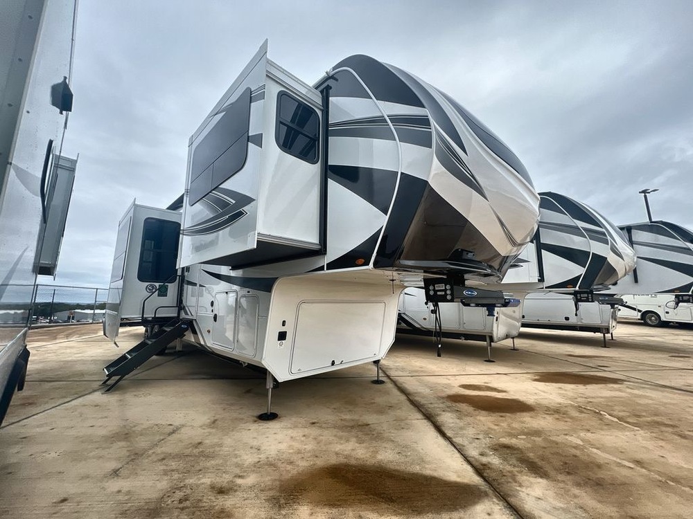 Single-owner 2024 Grand Design Solitude 380FL luxury fifth wheel that has been used on two trips and in new condition. If you want residential-style comfort on the road, this spacious 41' 5" RV features five slide-outs, creating an open and inviting interior with lots of living space and storage underneath.