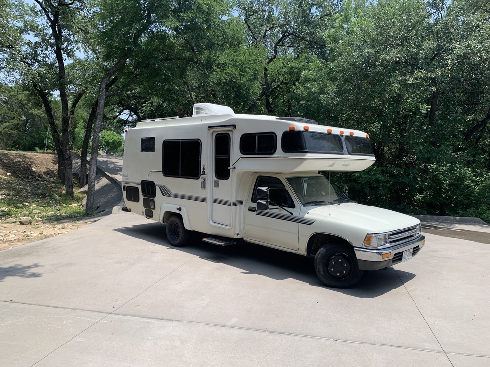 This is a Toyota Rolling Hotel as a receipt from 1999 calls it. Pull over anywhere and make a great meal. Sleep above where you drive. Walk two steps to your living room, fridge, stove, sink, closet and bathroom with a shower. Enjoy a dinette table on a swivel. Hang out on the roof and stargaze.
