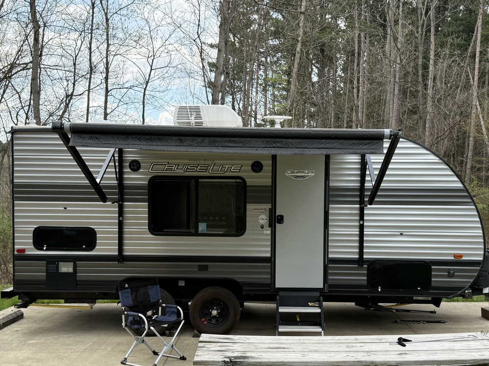 2020 Forest River Cruise Lite Travel Trailer, Model 171RBXL. Sleeps 3-4, two 20lb propane tanks, heat/ac, electric awning, nice bathroom, electric jack, murphy bed, oven/stove, wireless rear observation camera.