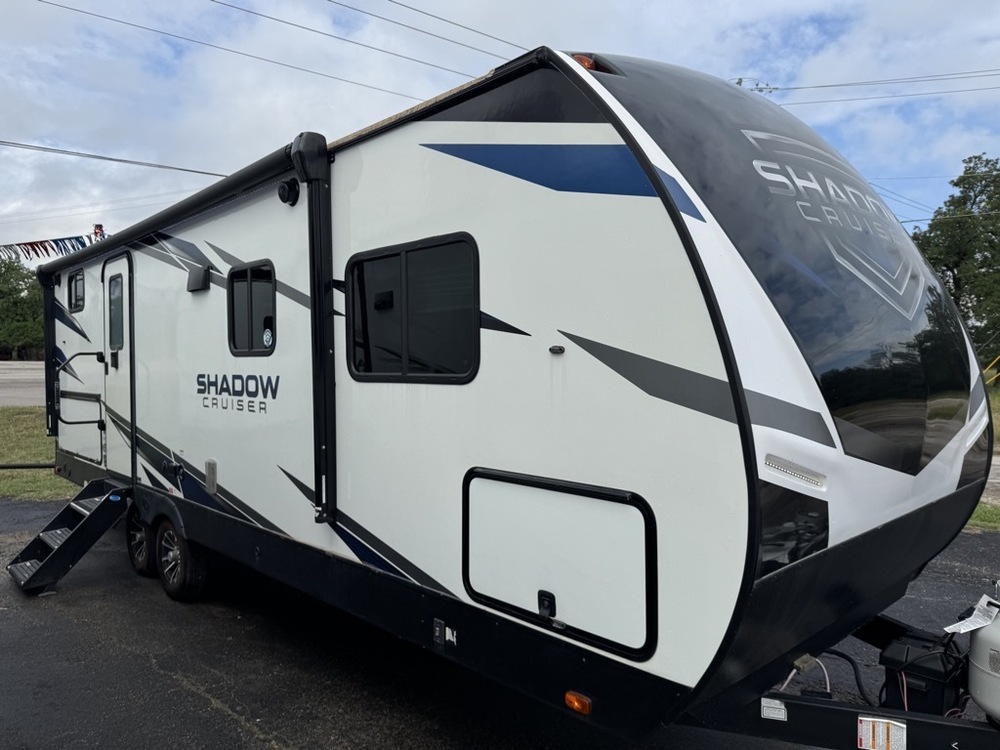 I have a super clean 2022 Cruiser Shadow Cruiser 258BHS for sale. This is a 29.75ft aluminum framed smooth fiberglass sided 4 seasons travel trailer with bunk beds, an outside kitchen and a big slide that weights less than 6,000lbs. This rig is full equipped. It features a power front jack, electric stabilizer jacks, a large power awning with LED light strip, an outside kitchen with fridge, flattop griddle and spray hose, 50 amp service, solar panel and charge controller, black tank flush, ladder prep, wineguard tv antenna with Wi-Fi, a painted front cap and much more. Inside the amenities continues. It features dual ducted A/C's, double over double bunks, a large bathroom with oversized shower, sofa that makes a bed, huge pantry/closet, larger 12 volt refrigerator, a large L shaped kitchen with a full appliance package and a private master suite with a new king size bed and an additional A/C. Tex Star RV Rob 817/219/4479 Azle Tx