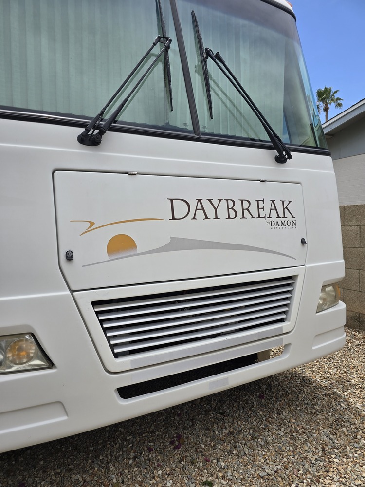 Your Damon model #3270 is a 34'7" x 8'4" wide class-A motorhome. A gas, Ford V10 Workhorse chassis. 51,257 miles (as of this posting). vin-1F6NF53S940A10968. The fuel and fresh water tanks are both 75 gal.; grey/black liquid holding tanks are both 50 gal. The remote/manual start, 4800 volt Generac generator is overhauled. A 100lbs/19 gal. propane tank is below the spare tire compartment. A (new) Progressive Industry 30amp shore power surge protector connector and two 6volt Trojan 225ampHr deep cell house batteries, under the entry stairs. It has a 3500 lbs. towing capacity. EXTERIOR: The body could use a wax/paint upgrade. The roof was recoated with an EPDM rubber membrane cover. A Kwikee programmable electric step (replaced) as well as the LCI leveling jacks. New, Valerium 19' patio awning and new slide-out topper. DRIVER area: Tilt steering wheel, cruise, heated exterior mirrors, Primus brake assist unit, TST tire pressure monitor system, 6" back-up camera monitor; left-side easy access control panel. HOUSE: Solid oak wood panels, cabinets, drawers with ample storage. Dinette can converts to a bed, a roll-out sofa bed, Thomas Payne recliner and 26" diagonal LG-TV. One house remote controller & one bedroom remote controller for the Carrier 13,500 BTU ducted AC & 13,000 BTU furnace. The locking bedroom door has a 9'x8' area room with a new Cozyway queen mattress, with side & overhead cabinets and under-bed storage. The 4'x6' bathroom has a 38"x21" shower/tub with a skylight allowing a 6'8" person to comfortably stand in the shower. KITCHEN: Dometic microwave, Dometic Frig/Freezer will operate on electric or propane. The Wedgewood three burner/over runs on propane as well as the six-gal water heart tank below the double kitchen sinks. CONTROL PANELS: appliance control/monitor panel is in the hallway, System switches are beside the stair well and main-braker panel is below the master bed. There are new & used accessories items included with the RV. This motorhome was primarily used as my temporary home in RV parks while searching and buying my house. Also, no extra charge for surface dust and random bird dropping.