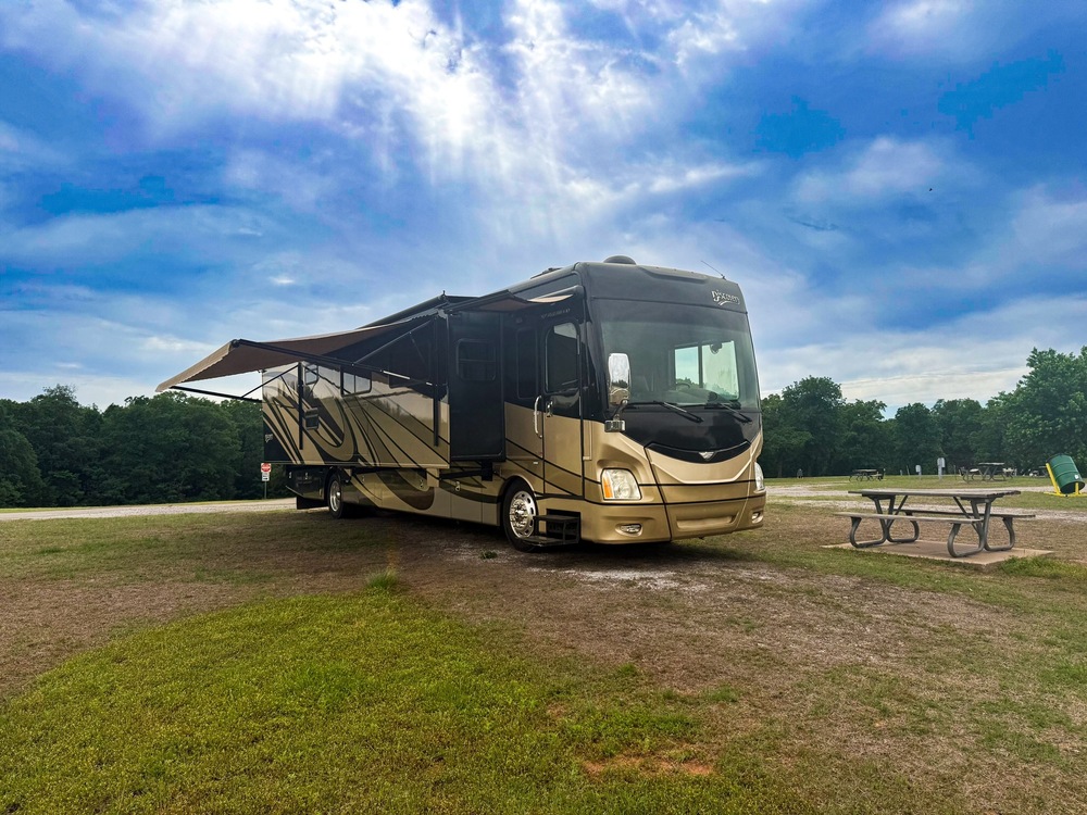 There are 3 air conditioner units on board, and 2 LPG furnaces. This unit is also equipped with solar blackout shades on every window.