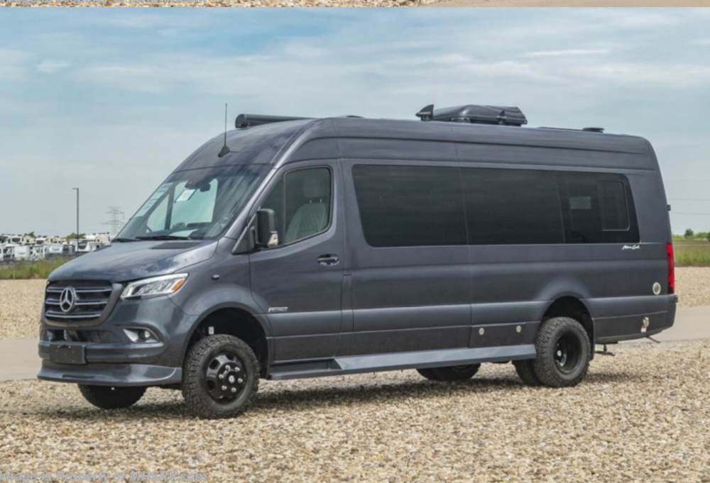 2024 Midwest Automotive Designs American Patriot MD4 with 6,884 miles. One owner, garage kept, and in excellent condition. This Mercedes-Benz Sprinter Class B RV is powered by a 2.0L High-Output Diesel engine. Built on a 3500XD chassis, this AWD vehicle is 24'2" long (170EXT). it is equipped with All Terrain Tires & Black Mercedes Rims, molded low profile spoiler, seat heat & massage for all four captains chairs, 7 belted seats in total, surround view camera system & dash monitor, wireless internet router & Apple TV. It has a roof-top air conditioner, Onan QG 2500LP generator with 15 gal propane tank, macerator with power hose reel, tankless hot water heater, shore line power hook-up, power awning, induction cooktop, two TVs, built-in microwave, and much more. Does NOT contain the Optional Freedom Battery Package. Purchased 3/2024, and is still under Midwest and Mercedes-Benz Warranty (3 years/36,000 miles) and Mercedes-Benz Drivetrain Warranty (5 years/100,000 miles).